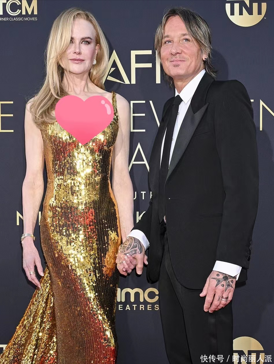 56岁妮可基德曼也太嫩了!穿小金裙和老公走红毯好惊艳,太明慧了